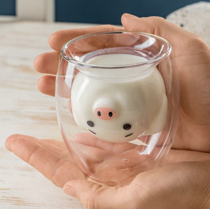 Pahar dublu ,interior in forma de Porcusor 260ml